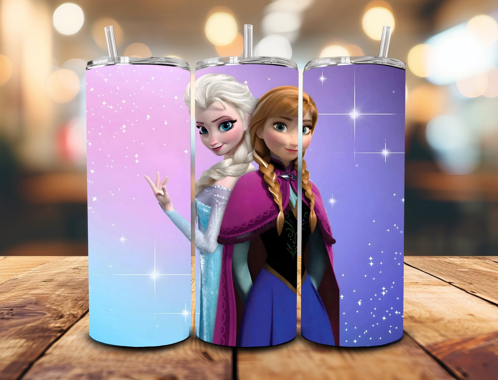 "Stay hydrated and show off your love for the Frozen sisters with this 20 oz stainless steel tumbler! Perfect for keeping your drinks cold on the go, this tumbler features vibrant colors and is inspired by the beloved sisters. A must-have for any Frozen fan!"