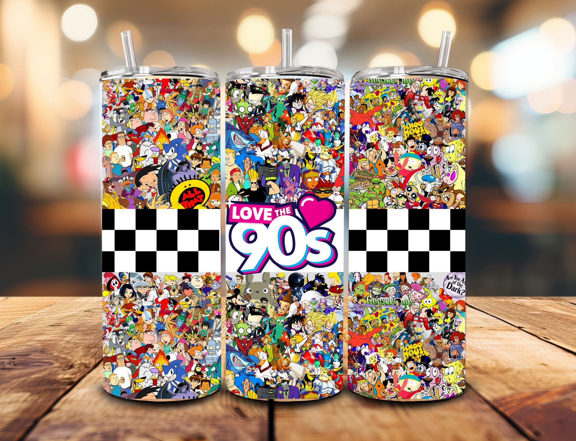 Take a wild trip down memory lane with Love The 90’s! This stainless steel Tumblr features iconic cartoon characters and the words "I love the 90s". With a 20-ounce capacity and included straw, relive your favorite decade with every sip. Perfect for risk-takers looking for a radical and adventurous addition to their collection.